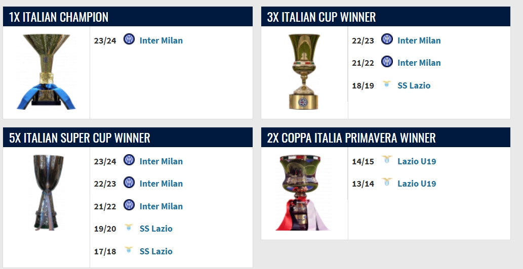 小因扎吉現(xiàn)年49歲,意大利籍教練,他于2021年夏天成為國米主帥,帶隊(duì)至今小因扎吉帶領(lǐng)球隊(duì)贏得1座意甲、兩個(gè)意大利杯、三個(gè)意大利超級杯。