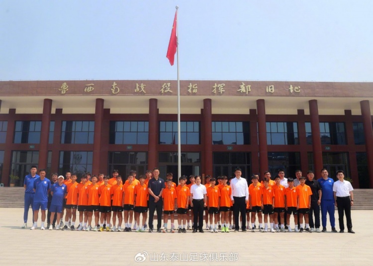 活動(dòng)開(kāi)始前,各位領(lǐng)導(dǎo)以及足校U14梯隊(duì)的所有隊(duì)員、教練員參觀(guān)了魯西南戰(zhàn)役指揮部舊址紀(jì)念館,重溫了黨的光輝之路。啟動(dòng)儀式上,鄆城縣副縣長(zhǎng)王永合發(fā)表了講話(huà),對(duì)泰山青訓(xùn)“滿(mǎn)天星計(jì)劃”項(xiàng)目落地鄆城表示熱烈歡迎,希望雙方今后加強(qiáng)合作,共同為中國(guó)足球增光添彩。宿茂臻代表山東泰山足球俱樂(lè)部致辭,著重強(qiáng)調(diào)了“五個(gè)堅(jiān)持”:堅(jiān)持黨的領(lǐng)導(dǎo),將足球青訓(xùn)融入國(guó)家體育發(fā)展大局;堅(jiān)持一體化發(fā)展戰(zhàn)略,打通青訓(xùn)學(xué)員—職業(yè)球員—教練員的全鏈條職業(yè)發(fā)展路徑;堅(jiān)持文體并進(jìn),建立“足球特長(zhǎng)+文化教育”的雙軌制發(fā)展通道;堅(jiān)持“請(qǐng)進(jìn)來(lái)、走出去”的國(guó)際化辦學(xué)理念,持續(xù)提升青訓(xùn)專(zhuān)業(yè)化水平;堅(jiān)持市場(chǎng)化運(yùn)營(yíng)方向,推動(dòng)泰山青訓(xùn)賦能全國(guó)青少年足球事業(yè)。周培建、張棟、宿茂臻、王永合、王濤、張建萌共同啟動(dòng)“滿(mǎn)天星計(jì)劃”,標(biāo)志著這一承載著青訓(xùn)拓展重任的項(xiàng)目正式啟航。隨后,周培建與張建萌為鄆城青訓(xùn)基地揭牌,宣布泰山青訓(xùn)鄆城青訓(xùn)基地正式成立。球員代表劉彬彬、張弛向鄆城青訓(xùn)基地贈(zèng)送了隊(duì)旗和隊(duì)服。