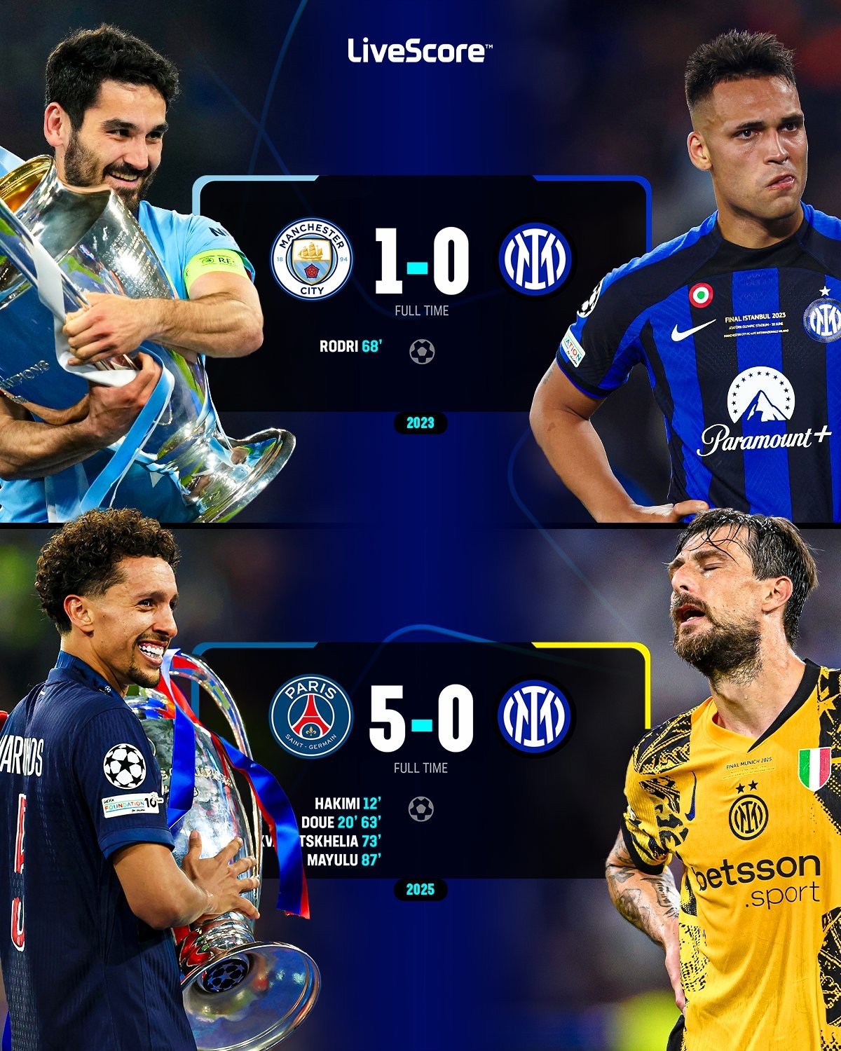 06月01日訊 歐冠決賽,國(guó)米0-5慘敗巴黎,見(jiàn)證巴黎首奪歐冠并加冕三冠王。