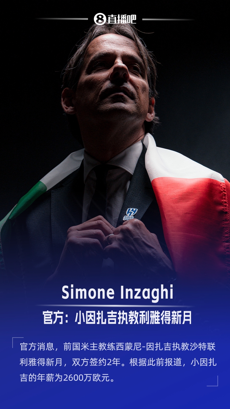 6月5日訊?官方消息,小因扎吉出任利雅得新月主帥。