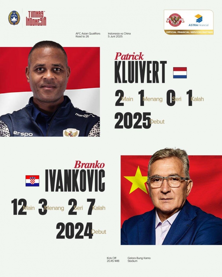印尼國家隊官推更新,對克魯伊維特和伊萬科維奇執(zhí)教球隊?wèi)?zhàn)績、兩方主力后腰球員佩盧佩西和王上源進行對比,還列舉出了兩隊近三場比賽的交手成績,國足取得2勝1平的不敗成績。