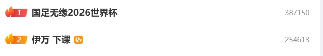 06月06日訊 國足0-1不敵印尼,提前無緣2026世界杯。賽后,“伊萬下課”登上熱搜第二。
