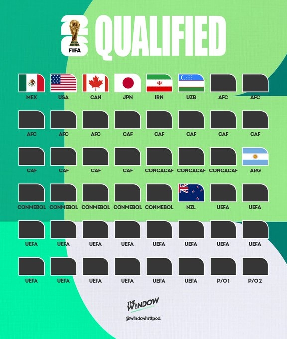 目前晉級2026世界杯的國家:美國、加拿大、墨西哥、日本、伊朗、阿根廷、新西蘭、烏茲比克斯坦。