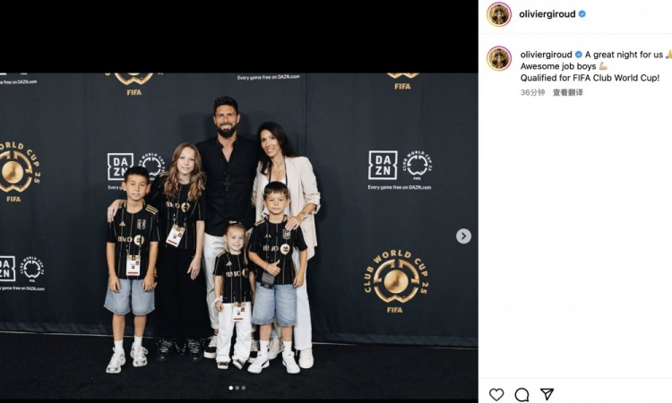 洛杉磯前鋒吉魯更新社交媒體寫道: