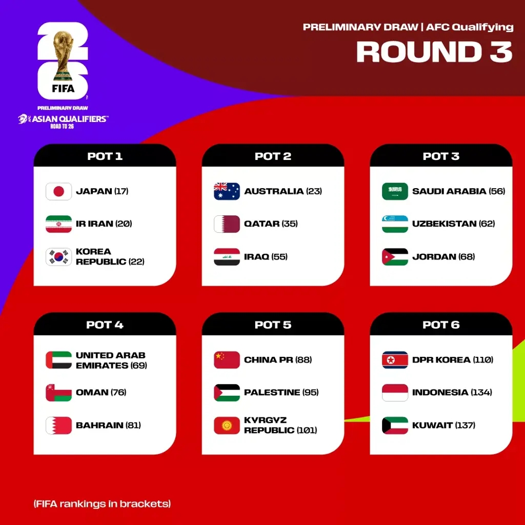 國足等三支五檔隊,最終全部排名第5;僅印尼一支六檔隊逆襲,進(jìn)入第四階段。