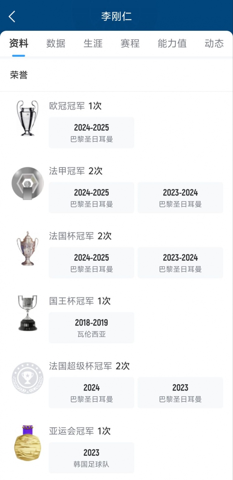 雖然本場比賽李剛?cè)蕸]出場,但他還是收獲了巴黎生涯的第7個冠軍獎杯。李剛?cè)逝褬闵行⒁瞾淼浆F(xiàn)場觀看比賽,并在賽后和李剛?cè)室黄饝c祝。