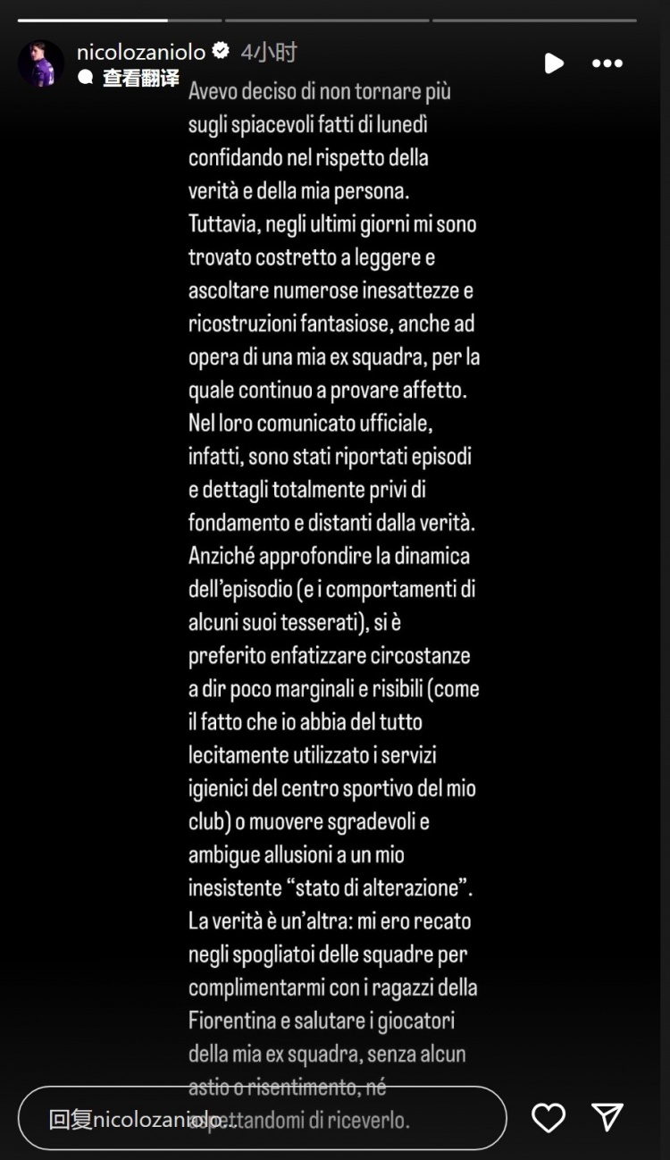 5月29日訊 扎尼奧洛更新社媒動態(tài),再次談到與羅馬青年隊球員沖突事件,他表示羅馬隊的官方聲明描述的事件細節(jié)完全沒有根據(jù)。