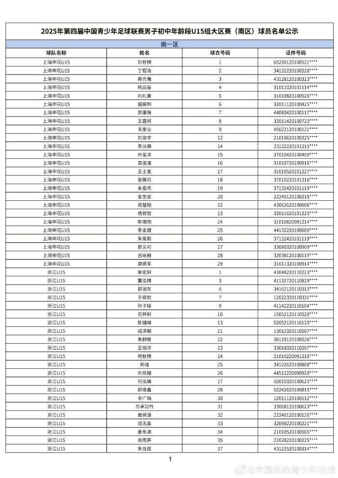 根據(jù)2025年第四屆中青賽賽事安排,中青賽賽事辦公室計(jì)劃于7月11日至7月23日組織第四屆中青賽男子初中年齡段U15組大區(qū)賽比賽,現(xiàn)將(南區(qū))參賽球隊(duì)人員名單予以公示,接受社會(huì)監(jiān)督。公示期間,如有異議,請(qǐng)實(shí)名向中青賽賽事辦公室反映,逾期不再接受反映。