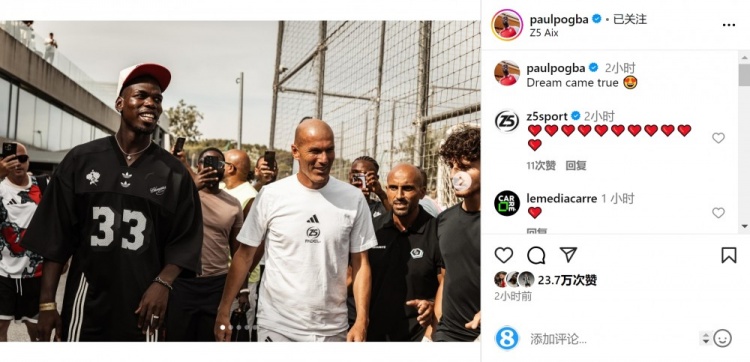 偶像!博格巴社媒曬與齊達(dá)內(nèi)合照:夢想成真??