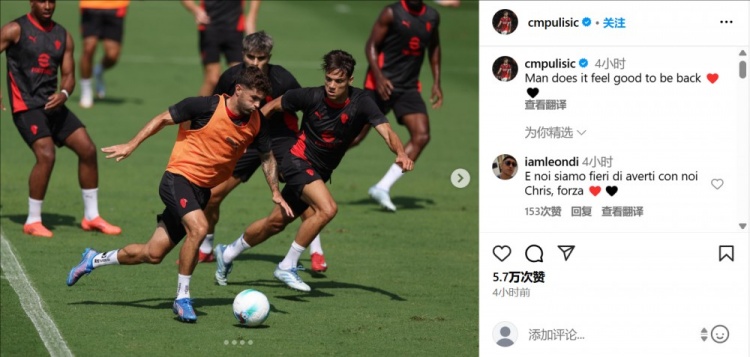 7月13日訊 普利西奇更新了社交媒體,曬出了自己在米蘭訓練中備戰(zhàn)新賽季的照片。