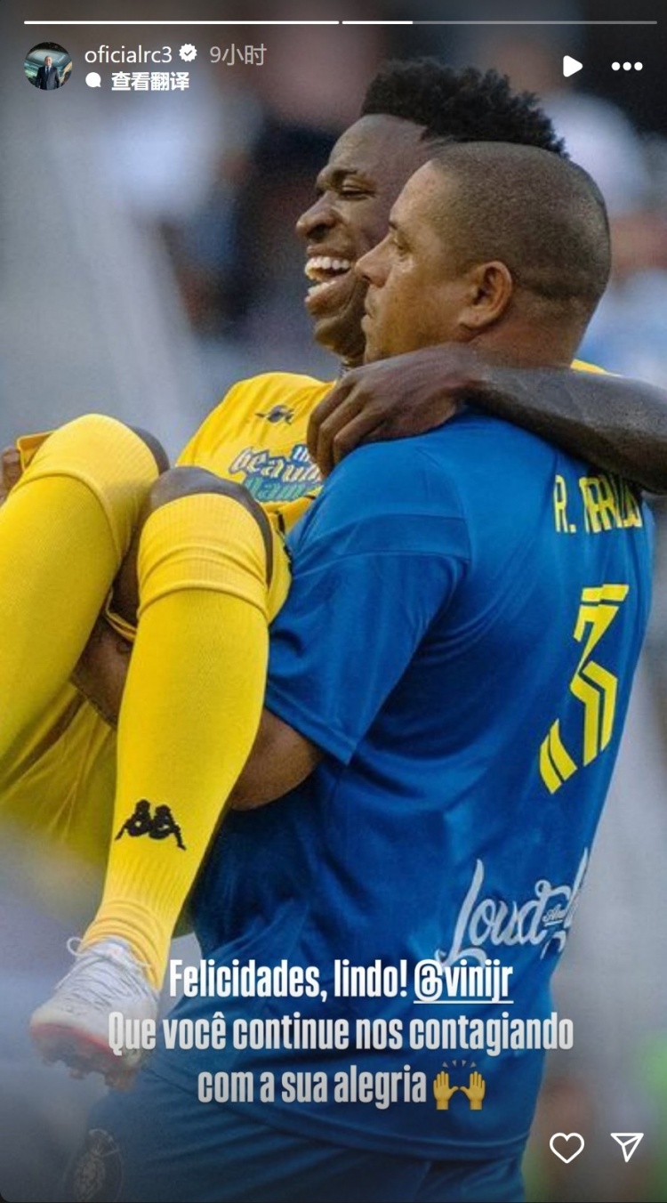 7月13日訊 維尼修斯迎來25歲生日,巴西足壇名宿羅伯特-卡洛斯為他送上祝福。