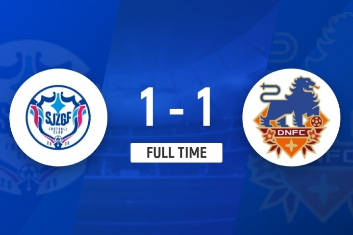 傷停補(bǔ)時7分鐘。全場比賽結(jié)束,石家莊功夫1-1定南贛聯(lián)。