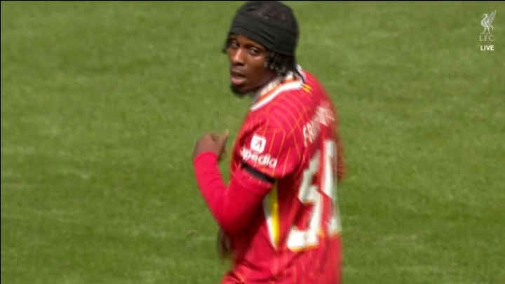 利物浦下半場陣容:56-伍德曼、3-遠(yuǎn)藤航、9-努涅斯、17-柯蒂斯-瓊斯、18-加克波、26-羅伯遜、50-本-多克、57-科爾克茲、59-弗林蓬、65-納洛、67-庫馬斯