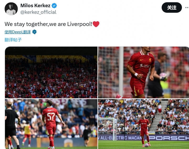 科爾克茲寫道:“我們團結(jié)在一起,我們是利物浦!”