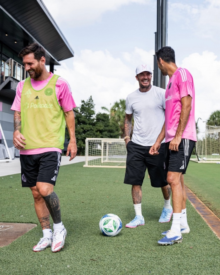 7月14日訊 貝克漢姆更新社媒動(dòng)態(tài),曬出與梅西、布斯克茨的合照。