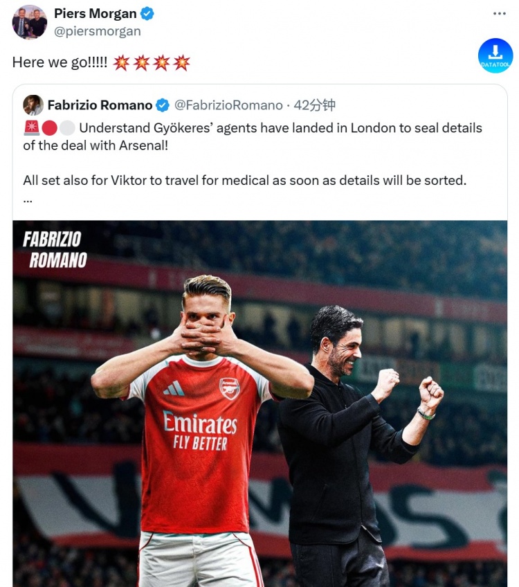 知名槍迷、媒體人摩根迫不及待轉(zhuǎn)發(fā)了羅馬諾的這條推特,并寫道:“Here we go?。。。?!”