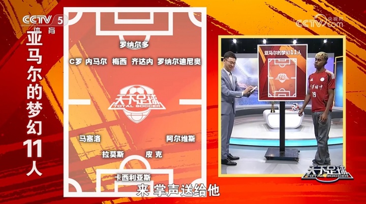 07月14日訊 央視《天下足球》播出了亞馬爾做客央視的專題節(jié)目,節(jié)目中亞馬爾列出了自己心目中的夢幻11人。