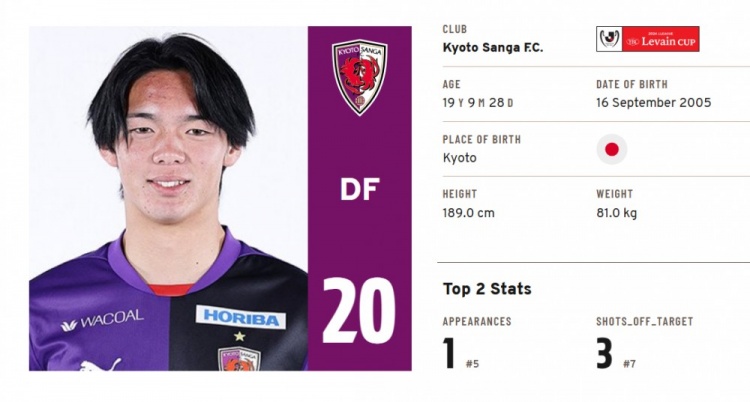 喜多壹也出生于2005年9月16日,身高1.89米,去年升入京都不死鳥一線隊,已經(jīng)為球隊出戰(zhàn)5場比賽,但是沒有在J聯(lián)賽亮相過。