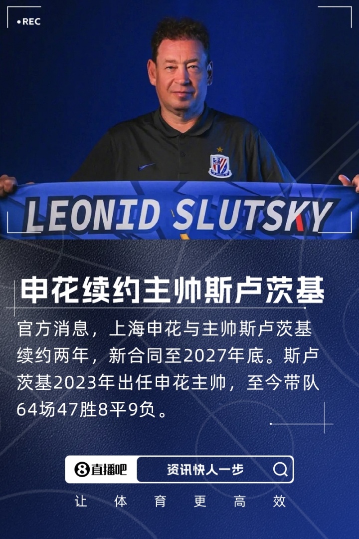 我們很高興地宣布,經與萊昂尼德-斯盧茨基(Leonid Slutsky)先生友好協(xié)商并達成一致,上海申花足球俱樂部與主教練斯盧茨基續(xù)約兩年,新合同至2027年底。