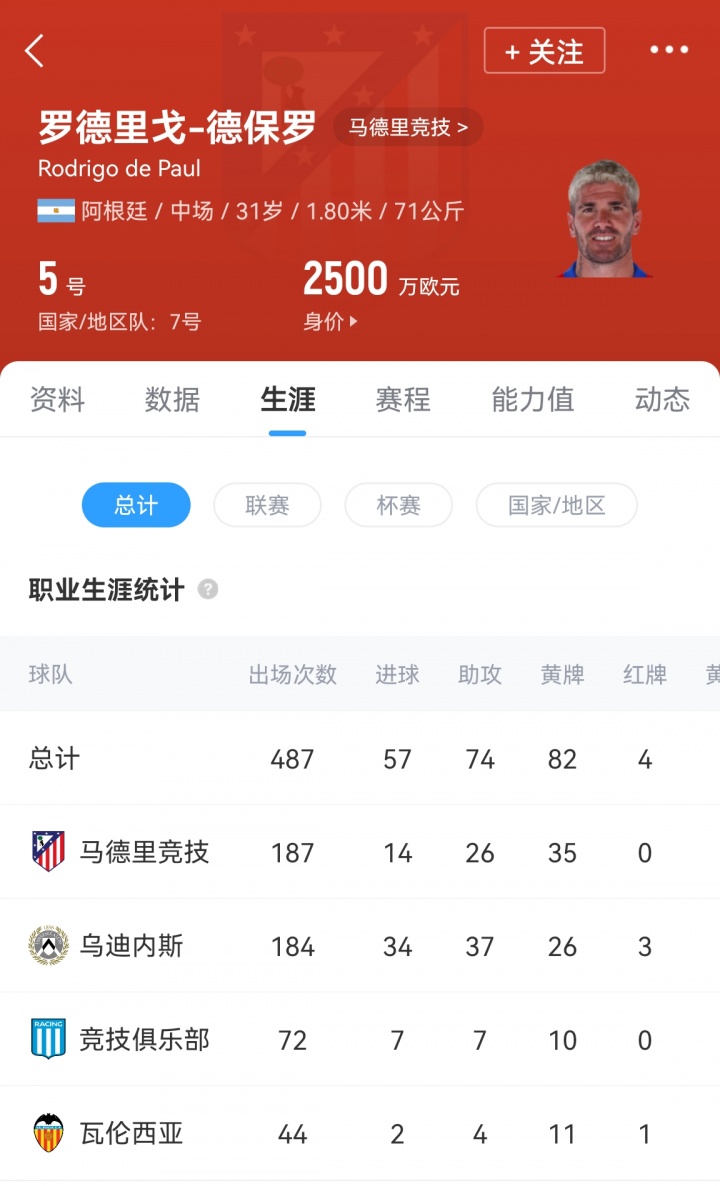 德保羅現(xiàn)年31歲,阿根廷中場(chǎng),現(xiàn)效力于馬德里競(jìng)技。自2021年加盟馬競(jìng)以來(lái),德保羅出場(chǎng)187次,貢獻(xiàn)14球26助。國(guó)家隊(duì)方面,德保羅隨阿根廷隊(duì)贏得了2022世界杯冠軍,并獲得兩次美洲杯以及一次歐美杯。