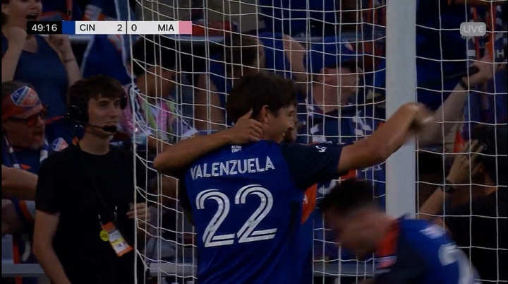07月17日訊 美職聯(lián)邁阿密國(guó)際客戰(zhàn)辛辛那提FC。比賽第49分鐘,邁阿密國(guó)際客場(chǎng)0-2落后,埃萬(wàn)德為辛辛那提破門。