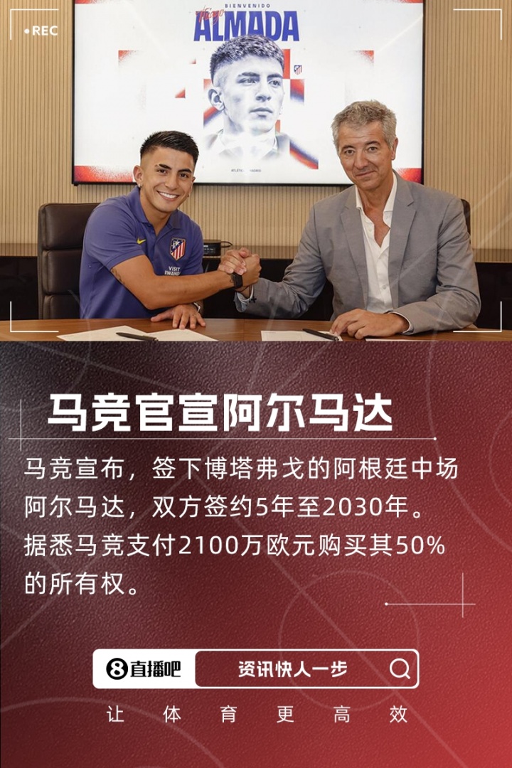 07月17日訊 官方消息,馬競簽下24歲阿根廷中場阿爾馬達(dá),雙方簽約5年,根據(jù)此前報(bào)道,馬競將支付2100萬歐,購買阿爾馬達(dá)50%所有權(quán)。