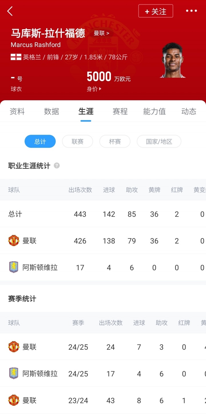 拉什福德上賽季后半段租借加盟維拉,出戰(zhàn)17場比賽,貢獻4球6助,如今他在曼聯(lián)的10號球衣已經(jīng)被庫尼亞占據(jù)。球員在曼聯(lián)的周薪超過32.5萬鎊,合同還有3年到期。