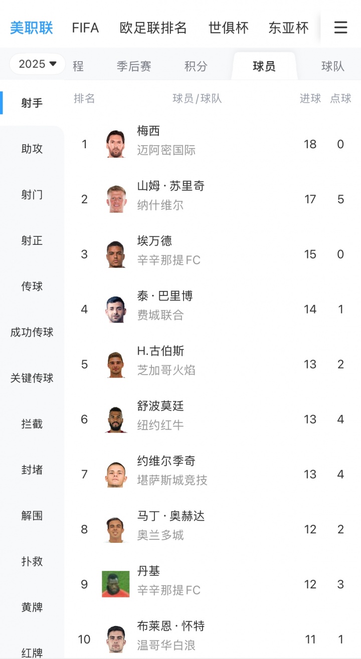 當(dāng)前美職聯(lián)射手榜上,梅西18粒進(jìn)球0點(diǎn)球排在第一,領(lǐng)跑美職聯(lián)射手榜。