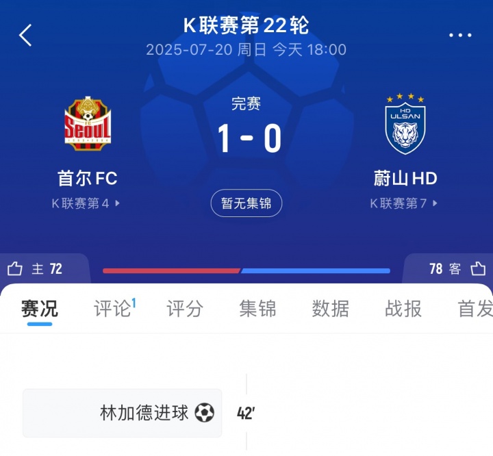07月20日訊 在剛剛結束的K聯(lián)賽第22輪比賽中,首爾FC1-0蔚山HD,林加德在比賽中轟入一記精彩的世界波,打入全場唯一進球幫助球隊取勝。