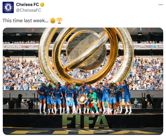 爽賺1個(gè)億!切爾西官推回憶世俱杯奪冠:一周前的此刻????