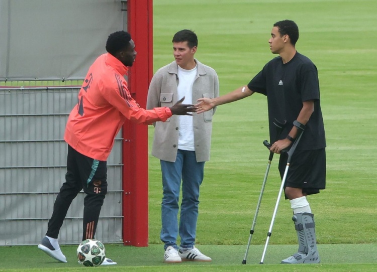 據(jù)悉穆西亞拉在12點20分一瘸一拐地走進場地,陪同他的是其好友阿方索-戴維斯(右膝前十字韌帶撕裂)以及球員經(jīng)理約翰內(nèi)斯-莫斯曼。