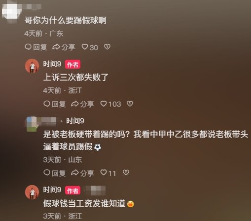 近日,時間更新個人社媒。在評論區(qū)有網(wǎng)友問:哥你為什么要踢假球啊