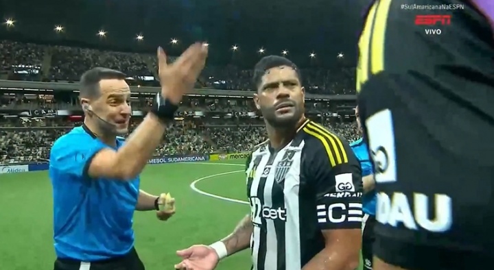 比賽進(jìn)入點(diǎn)球大戰(zhàn)之前,米內(nèi)羅競(jìng)技球員胡爾克與裁判溝通,兩人笑著交流。隨后裁判對(duì)胡爾克出示一張黃牌,胡爾克神情十分疑惑不解。