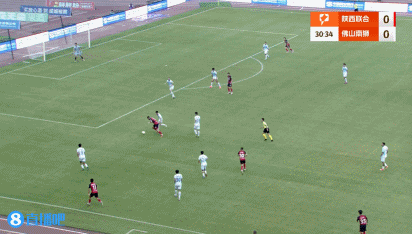 傷停補(bǔ)時(shí)5分鐘。上半場(chǎng)比賽結(jié)束,陜西聯(lián)合2-0佛山南獅。