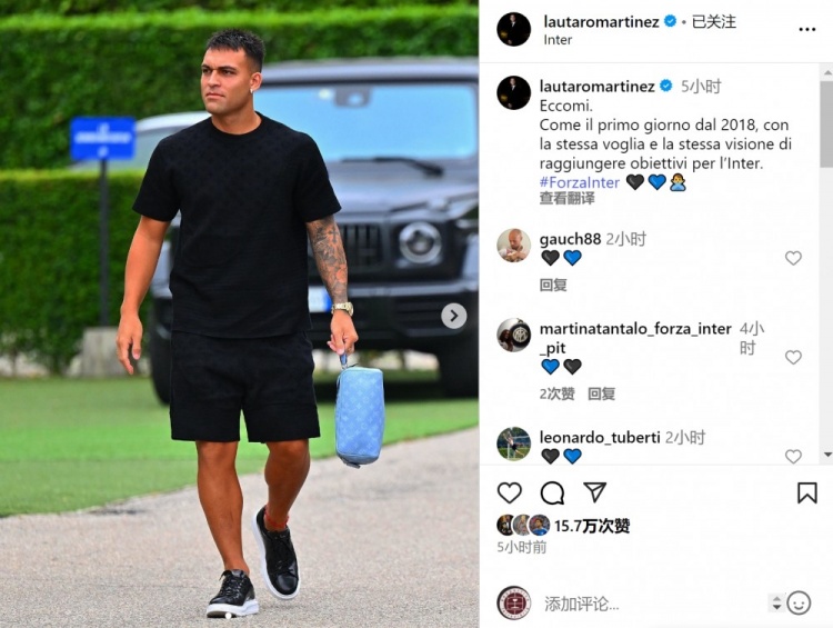勞塔羅從假期中歸來(lái),回到俱樂(lè)部參加測(cè)試,他在社交媒體上曬出照片,配文:“像2018年加盟球隊(duì)的第一天一樣,懷著同樣的渴望和愿景去實(shí)現(xiàn)國(guó)米的目標(biāo)?!?/p>
