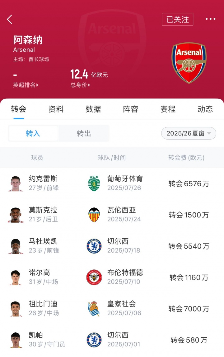 加上此前阿森納已經(jīng)官宣的凱帕(580萬歐)、祖比門迪(7000萬歐分期支付)、諾爾高(1160萬歐)、馬杜埃凱(5540萬歐)和莫斯克拉(1500萬歐+浮動(dòng)),阿森納這個(gè)夏窗的總支出已經(jīng)達(dá)到2.23564億歐。