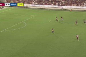 第42分鐘,庫(kù)巴西后場(chǎng)帶球被斷,神戶反擊第一下打門被撲,隨后宮代大圣點(diǎn)球點(diǎn)附近得球轉(zhuǎn)身低射扳平比分,神戶勝利船1-1巴塞羅那。↓