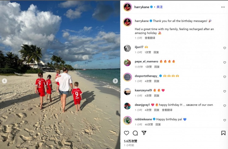 凱恩曬出自己同家人的海邊度假照,并配文:“謝謝大家的生日祝福!??我和家人度過了愉快的時(shí)光,在經(jīng)歷一個(gè)美好的假期后感覺精神煥發(fā)?!?/p>