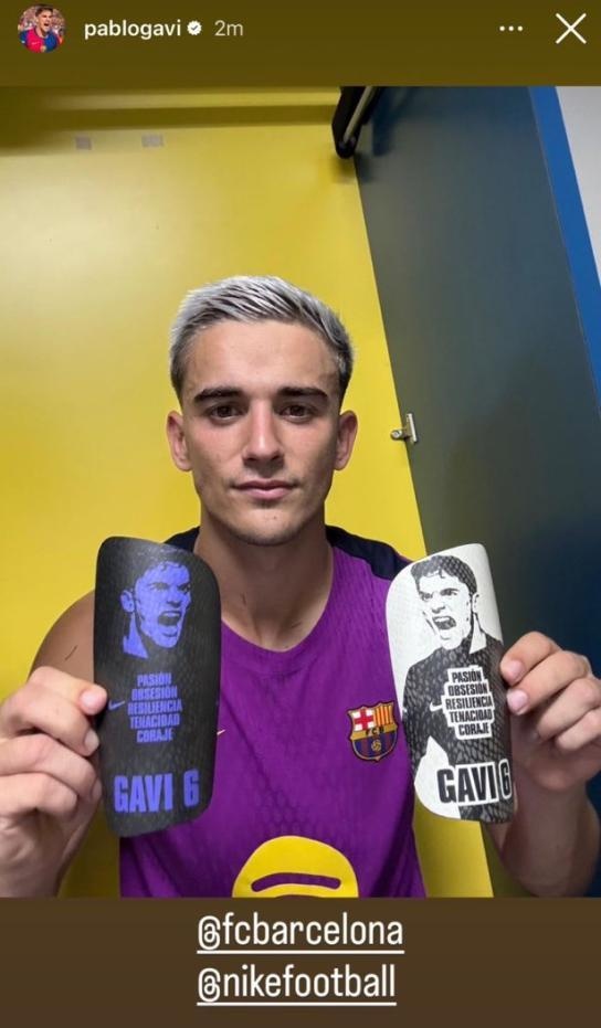 7月29日訊 巴薩中場加維更新社交媒體,曬出自己的護腿板。