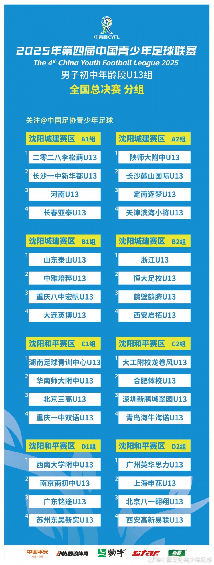 2025年第四屆中青賽男子初中年齡段U13組、U15組全國(guó)總決賽分組出爐