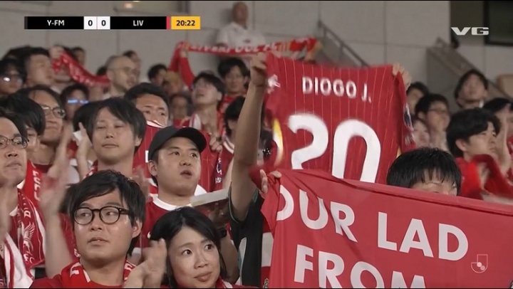 07月30日訊 北京時間18點30分,利物浦客場挑戰(zhàn)橫濱水手。比賽第20分鐘,現(xiàn)場球迷起立鼓掌致敬今年夏天不幸去世的利物浦球員若塔!