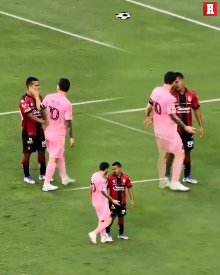 上半場比賽中,梅西被阿特拉斯球員埃爾南德斯犯規(guī),隨后與他發(fā)生口角,碰了下對方球員脖子和臉。