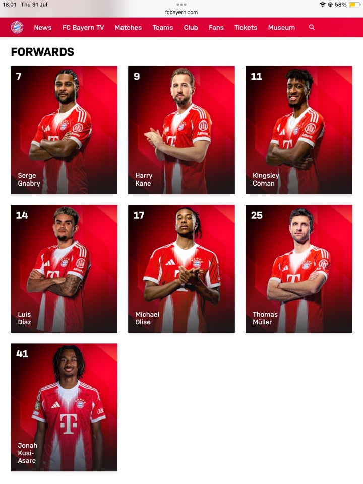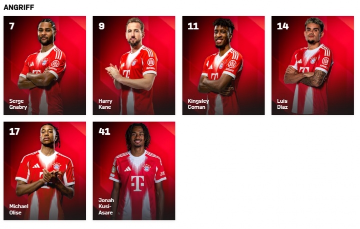 拜仁官網(wǎng)昨日的鋒線名單↓