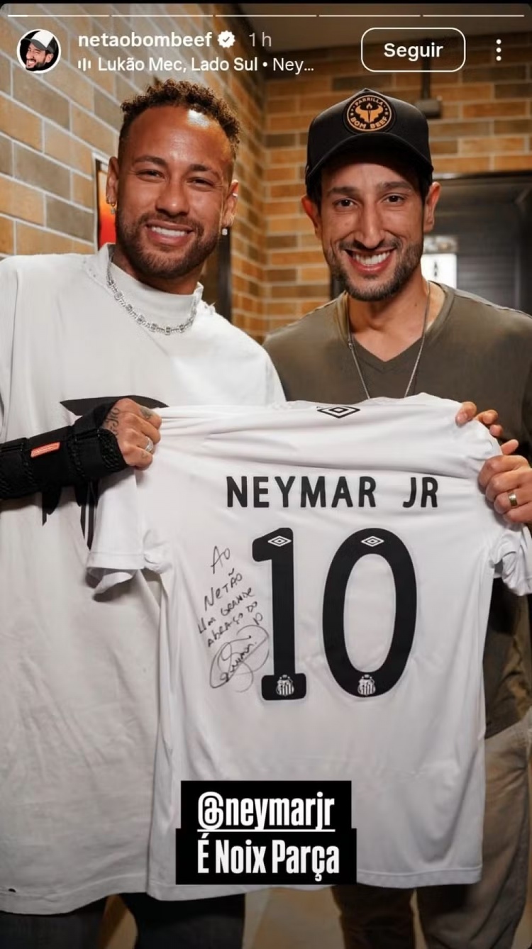 內(nèi)馬爾還利用此次訪問的機(jī)會,向網(wǎng)紅店主Net?o Bom Beef贈送了一件簽名球衣。
