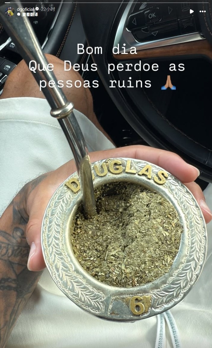 8月2日訊 尤文圖斯中場(chǎng)道格拉斯-路易斯更新Instagram,曬出自己專屬的馬黛茶杯。