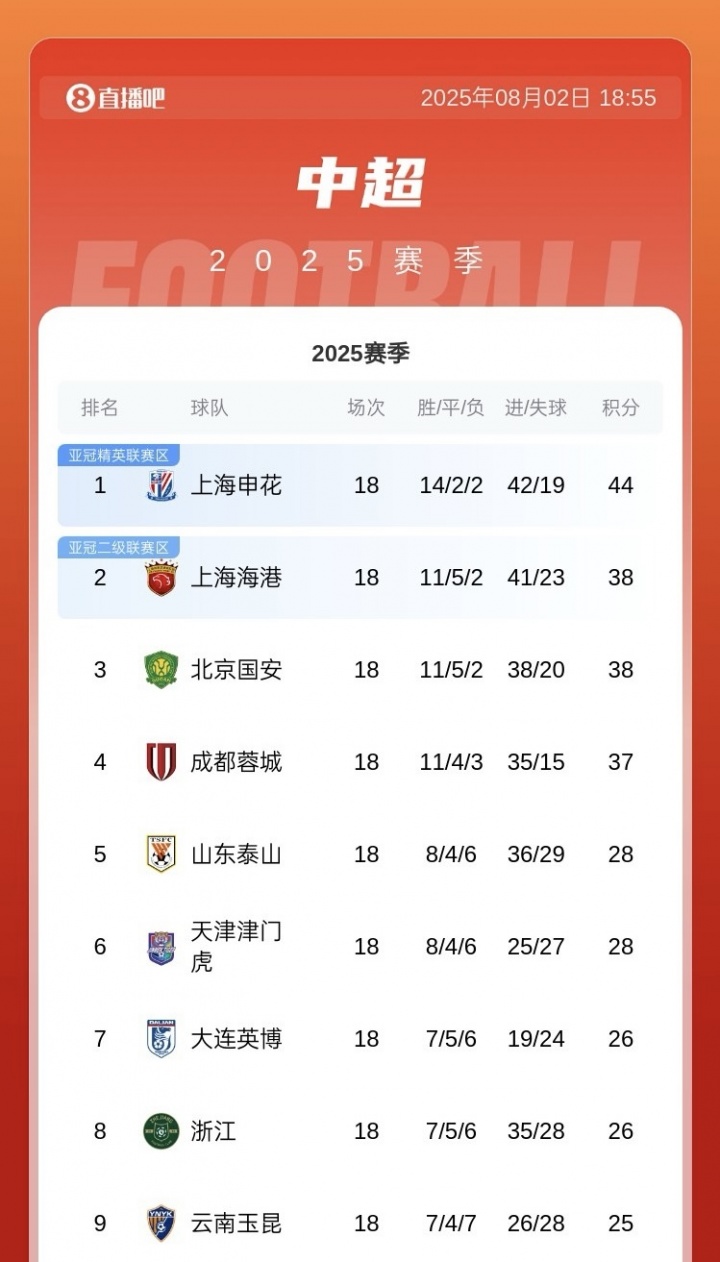申花在積分榜積44分領(lǐng)先排名第9的玉昆19分,但玉昆憑借高原主場(chǎng)優(yōu)勢(shì)已取得主場(chǎng)五連勝,此刻申花半場(chǎng)1-3落后。