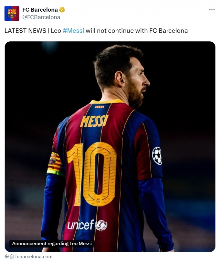 巴薩衷心地感謝梅西為俱樂部的壯大而做出的貢獻(xiàn),祝愿他未來生活和職業(yè)生涯一切順利!