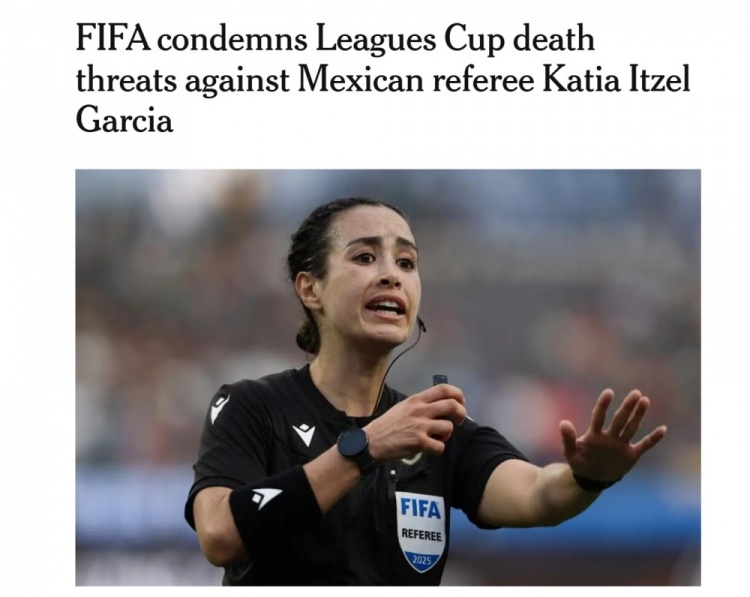8月5日訊 據(jù)The Athletic報(bào)道,國際足聯(lián)力挺墨西哥女裁判卡蒂亞-伊策爾-加西亞,強(qiáng)烈譴責(zé)她收到的死亡威脅。