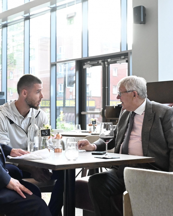 賽前,弗格森與德赫亞共進(jìn)晚餐,兩人滿臉笑容擁抱熱聊。