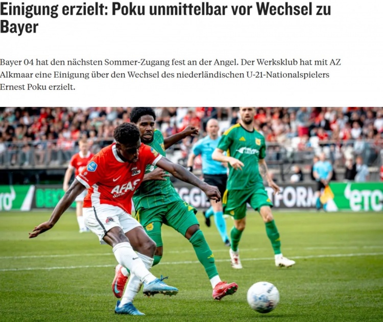 波庫目前效力于阿爾克馬爾,兩家俱樂部已經(jīng)就轉(zhuǎn)會(huì)事宜達(dá)成一致,球員只需通過體檢就可加盟。這名21歲的邊鋒將和勒沃庫森簽約至2030年,轉(zhuǎn)會(huì)費(fèi)約為1000萬歐。